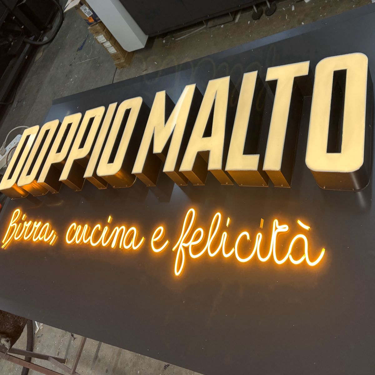 Le insegne possono essere realizzate su misura in base al logo, al font o al design richiesto, ideali per negozi, locali, eventi e spazi commerciali che desiderano un’insegna d’impatto e dal look contemporaneo.